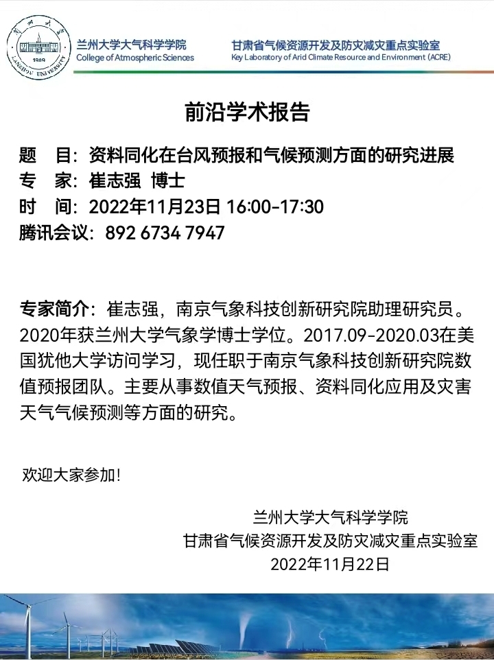 大气科学学院学术报告——崔志强博士