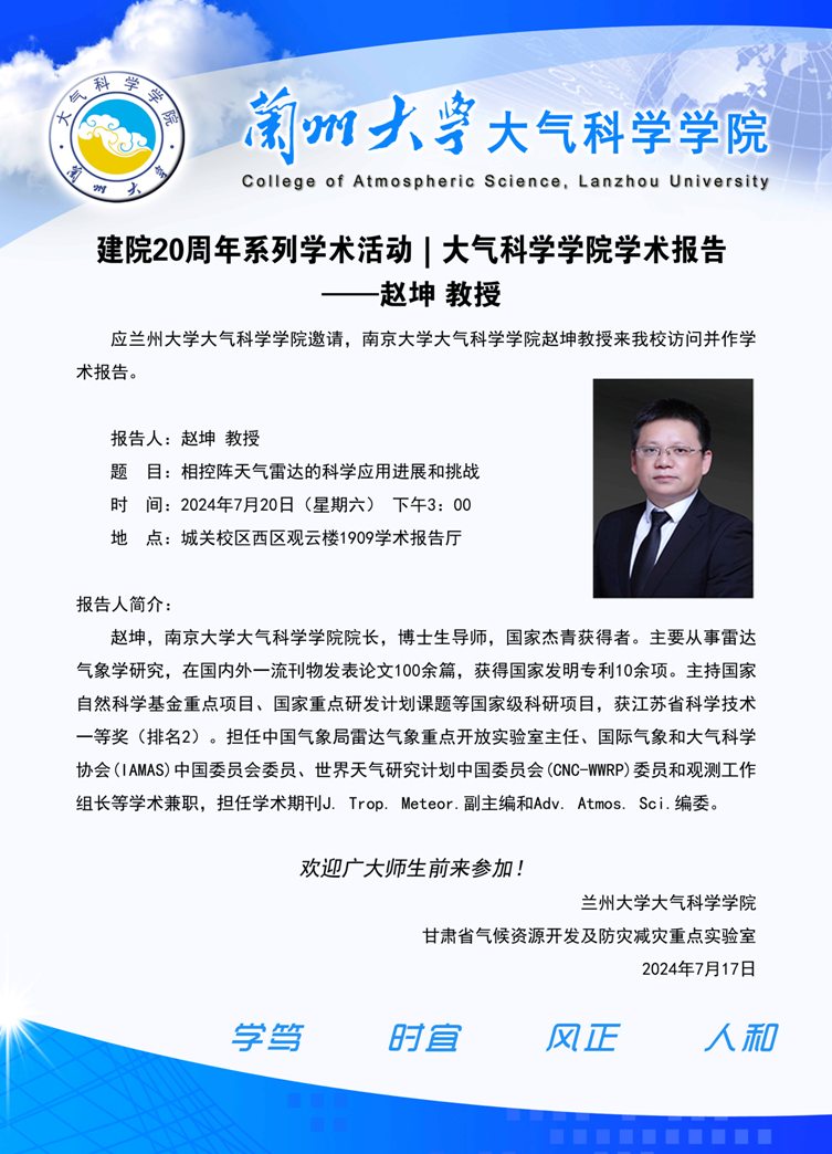 建院20周年系列学术活动|大气科学学院学术报告——赵坤 教授