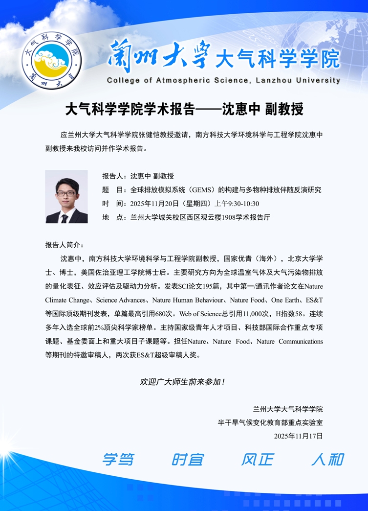 大气科学学院学术报告——沈惠中 副教授