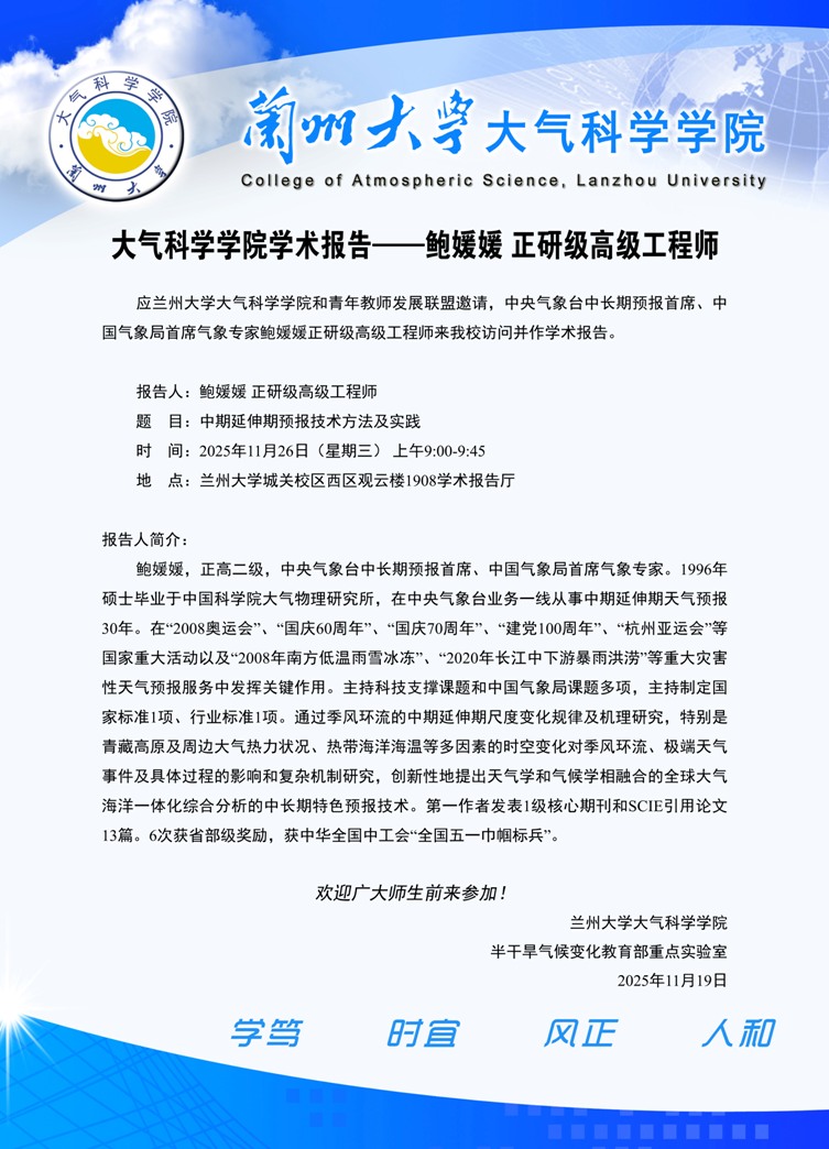 大气科学学院学术报告——鲍媛媛 正研级高级工程师