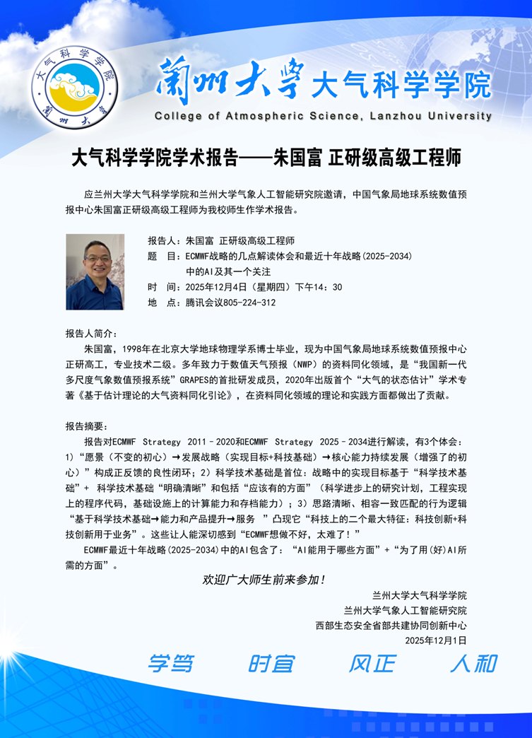 大气科学学院“智慧气象”系列报告——朱国富 正研级高级工程师